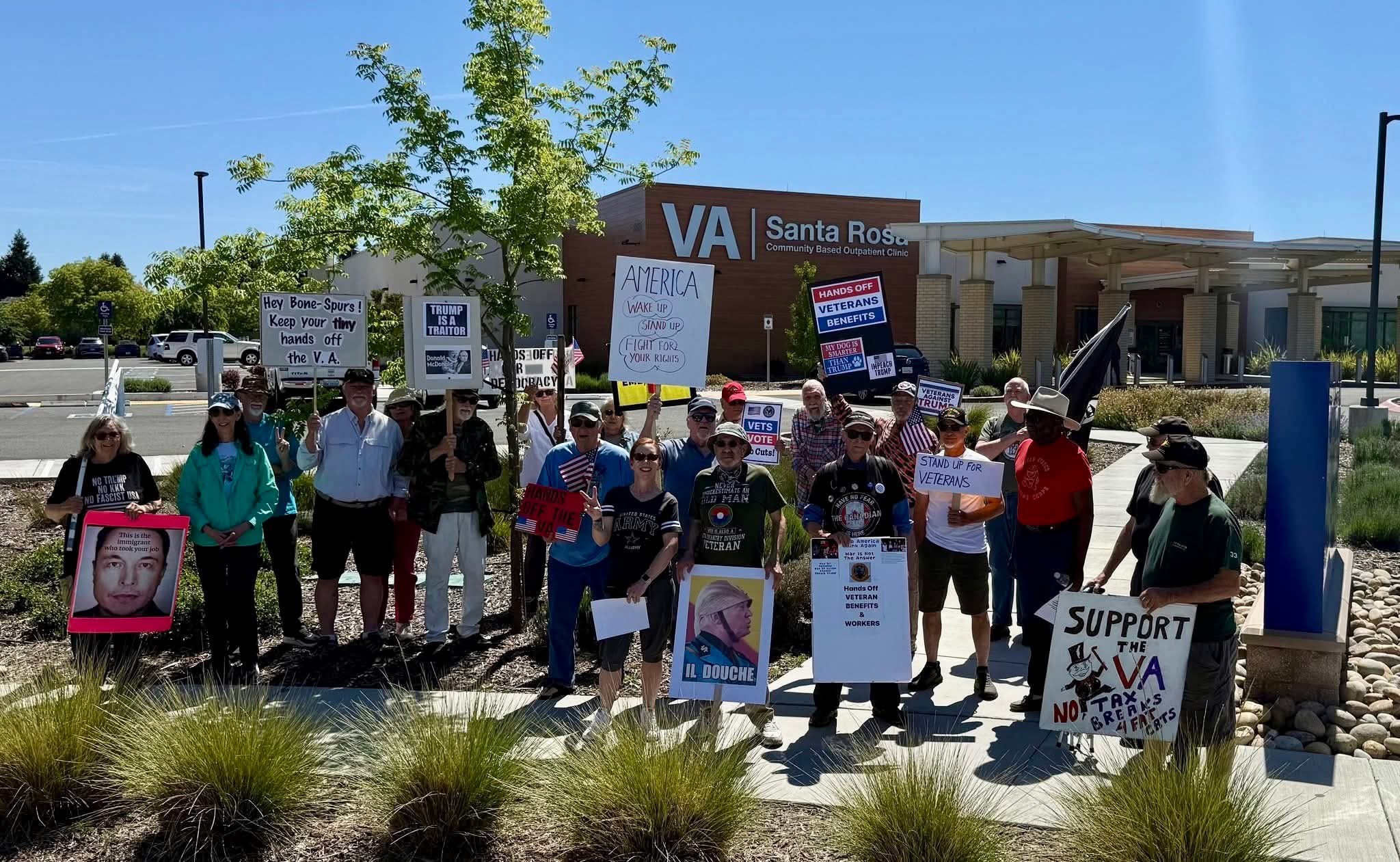 Members of chapter 71 and their supporters have been meeting at the Santa Rosa VA clinic south every Friday since February to bring attention to drastic cuts happening to the VA healthcare system. We are regularly joined by veterans who use the clinic. If your chapter is interested in starting a similar protest at a VA hospital or clinic, connect with chapter 71 who is happy to share information and strategy.