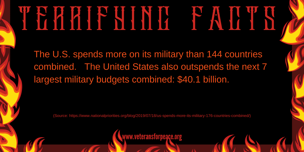 Veterans For Peace knows that the real ghouls and goblins are continuing to fund these endless wars and the defense contractors who continue getting rich off these dangerous policies. We decided to release some real facts that show how terrifying and out of control the U.S. is when it comes to defense spending, nuclear weapons, treatment of our veterans, etc.