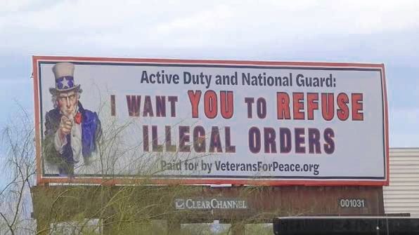 So naturally many people are asking the question, just what is an “illegal order?” The Veterans For Peace website gives the following examples: