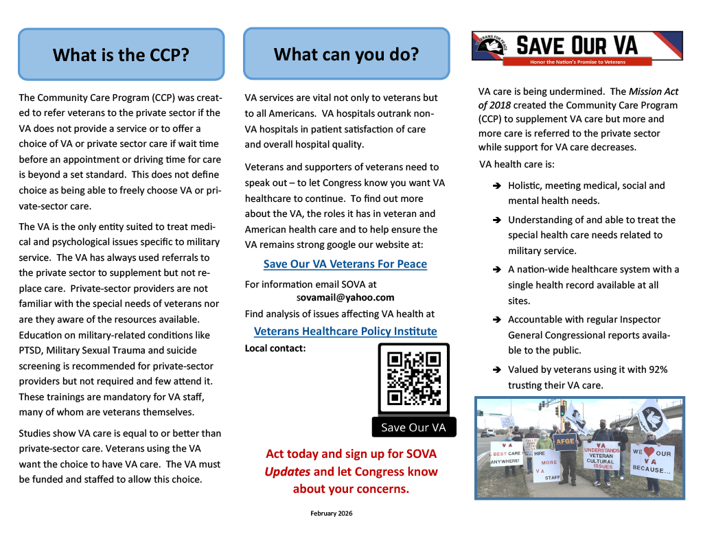 Below you will find two versions of the CCMP brochure. The full-color version can be sent to a local print shop for printing, and the simplified version was created for those who prefer to print at home. Click on the images below to access the file for download! You will also see the VFP Environmental Costs of War handout, as well as a half-page flyer that links to the full PDF!