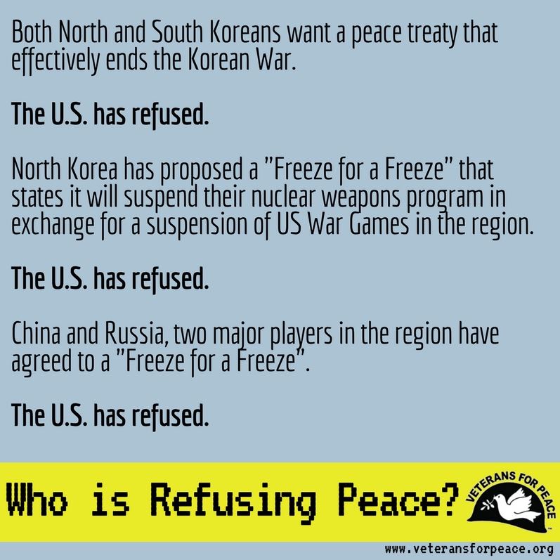 - The Korean War has never ended and many want a peace treaty that the US refuses to discuss.