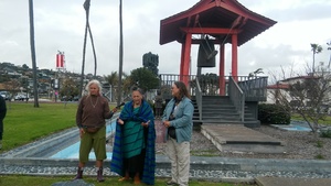Puna Kalama Dawson, a Native Hawaiian Keeper of Knowledge and Hula instructor, performed a traditional Invitation Ceremony for the Golden Rule anti-nuclear sailboat, as its crew prepares to embark on a voyage to Hawaii, the Marshall Islands, Guam, Okinawa, Korea and Japan. The boat will arrive in Japan in time for the August 2020 75 th anniversary commemorations of the U.S. nuclear bombings of Hiroshima and Nagasaki.