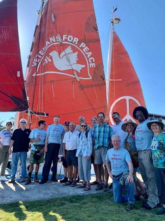 We are sailing for a Nuclear-Free World and a Peaceful, Sustainable World! And we are flying the flag of Veterans For Peace.